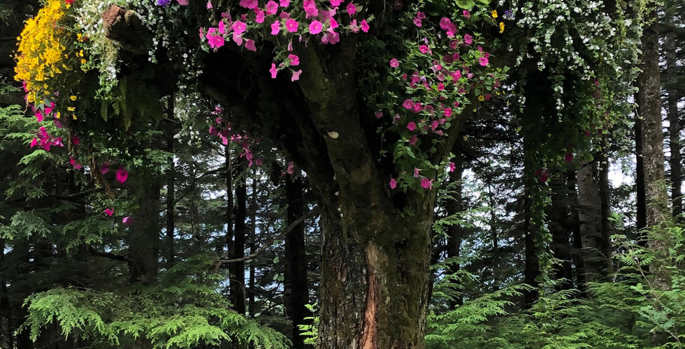 Next, we toured Glacier Gardens, including a golf cart-like tram to the top of the Tongass National Forest. The unique upside-down trees and tropical rainforest were fun to see and inspired Dan, the horticulturalist, to buy a book in the gift shop. Glacier Gardens has been family owned since 1984 and is definitely worth a visit if you're in Juneau.